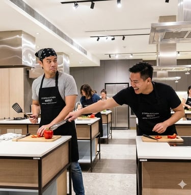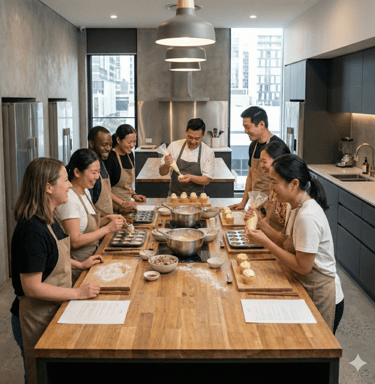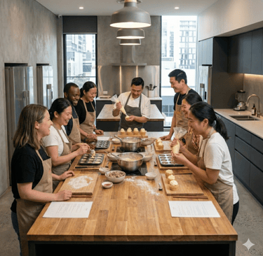 Culinary Collaboration: Create, Connect, & Savor Step away from the ticking clock and into a world of shared creativity. Our non-competitive workshops are designed to foster genuine connection through the art of cooking. Whether you are mastering delicate macarons, folding intricate dim sum, or rolling fresh pasta, the focus is on learning together in a relaxed, stress-free environment. Guided by our expert chefs, your team will bond over new skills and enjoy the delicious fruits of their labor—no competition required.