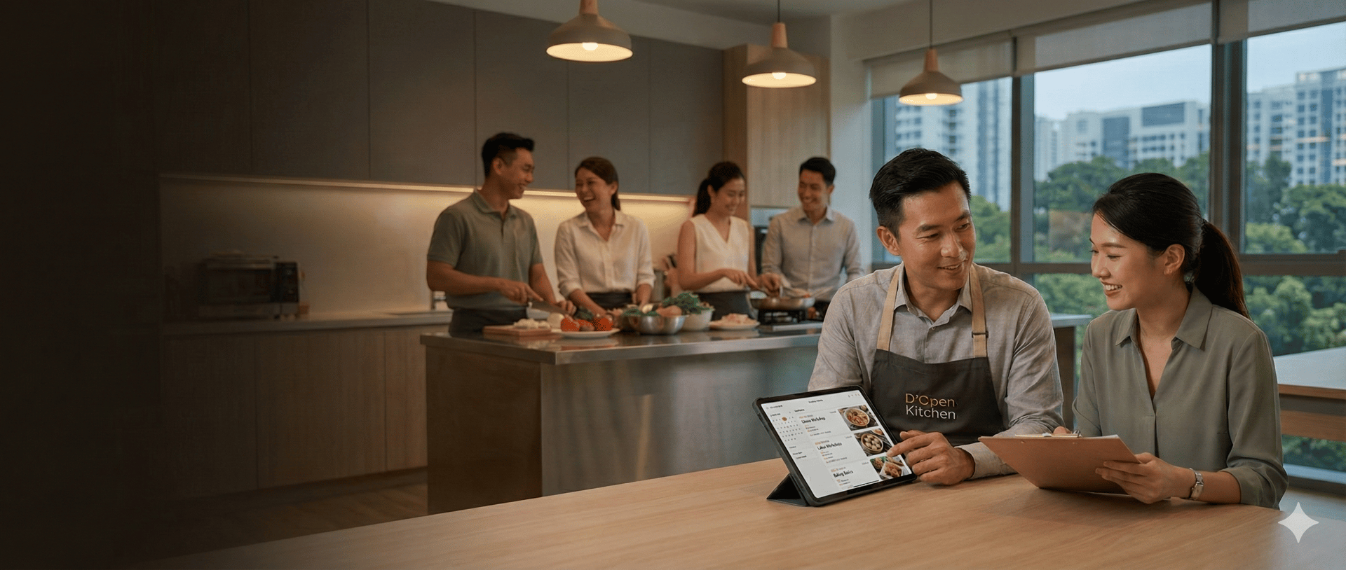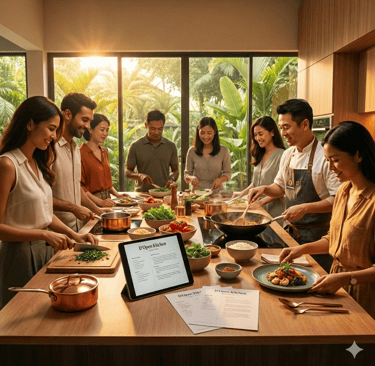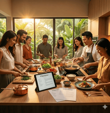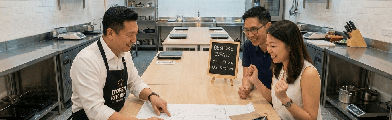Experience a cooking event designed just for you. At D’Open Kitchen, our Customised Recipe Event lets you craft a menu that reflects your tastes, culture, and occasion—whether it’s a celebration, team activity, or private gathering. In our intimate Singapore studio, you and your guests will cook, learn, and dine together on dishes created specially for your group. It’s a personalised culinary journey that turns every session into a meaningful and memorable experience.